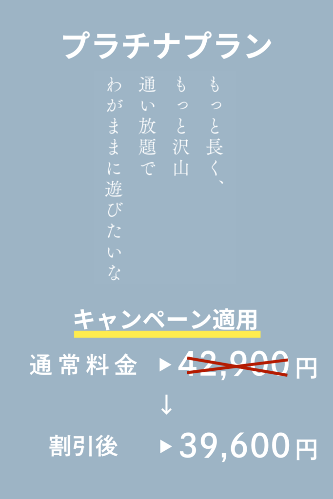 料金表  (永年月会費3,300円オフの金額です)——————————————————
