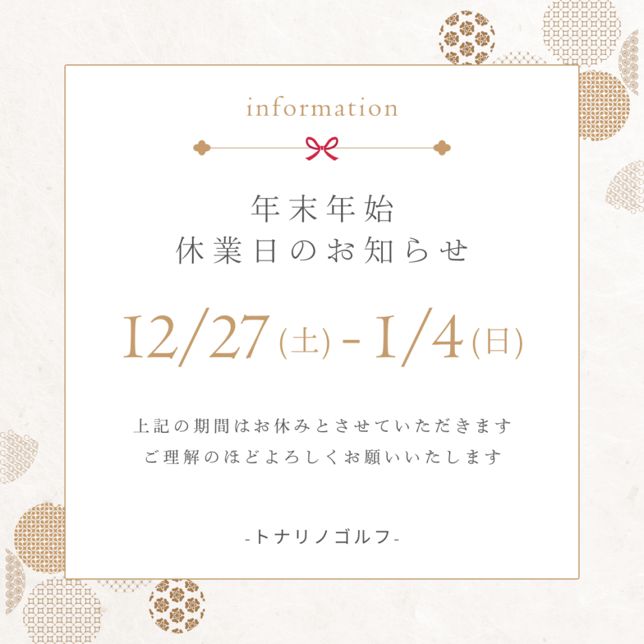 休業期間 :2025年12月27日(土)~2025年1月4日(日)